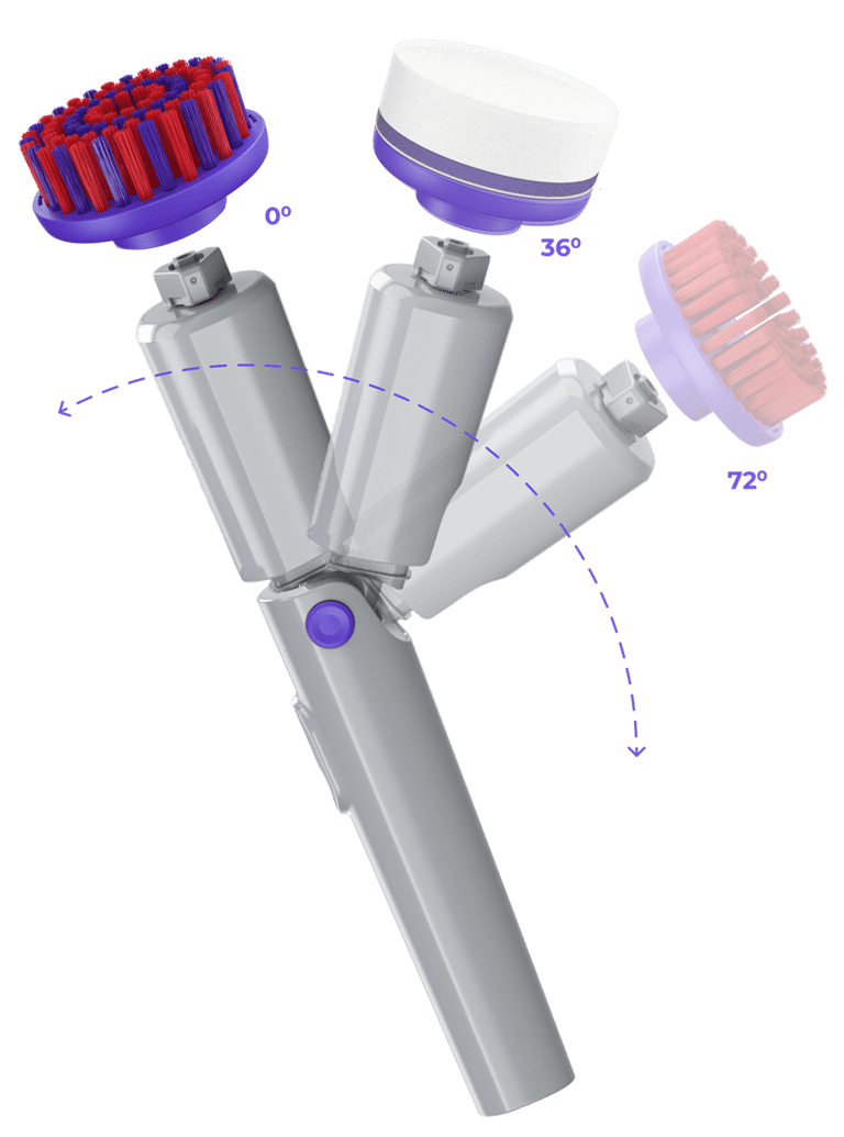 Die rotierende Bürste erreicht Fugen, Ecken und strukturierte Oberflächen, die manuell schwer zu reinigen sind.